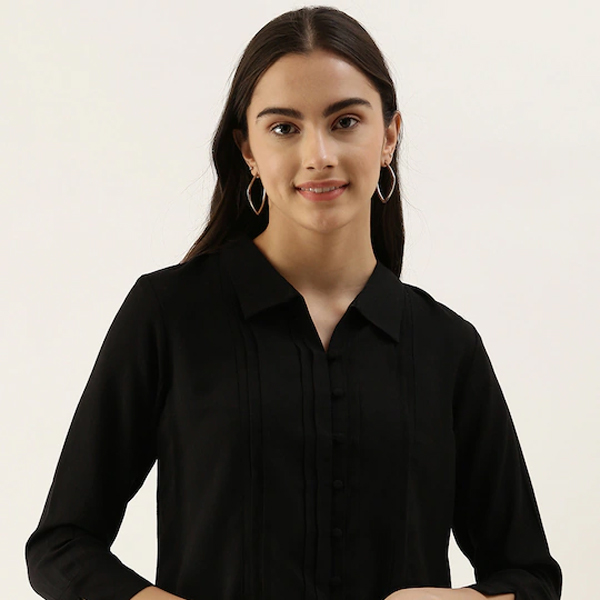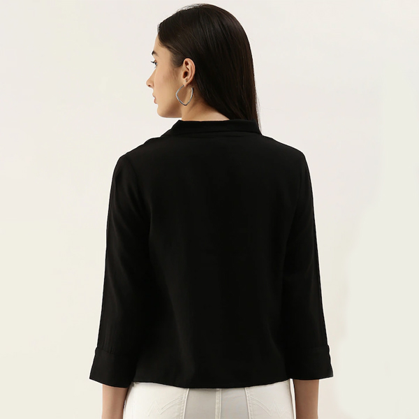 Black Solid Shirt Style Top