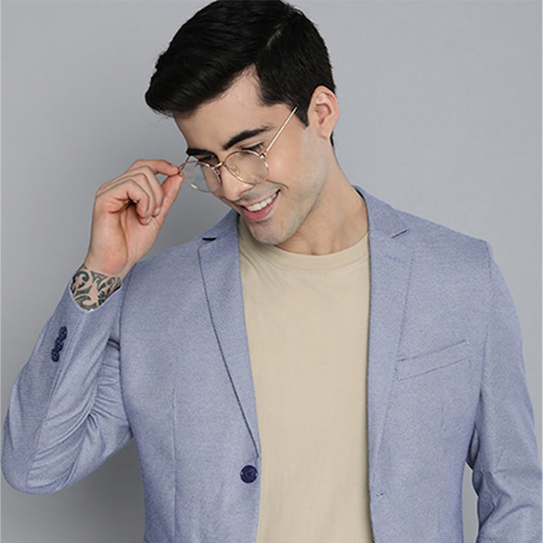 Men Blue Self Design Textured Regular Fit Smart Casual Blazer