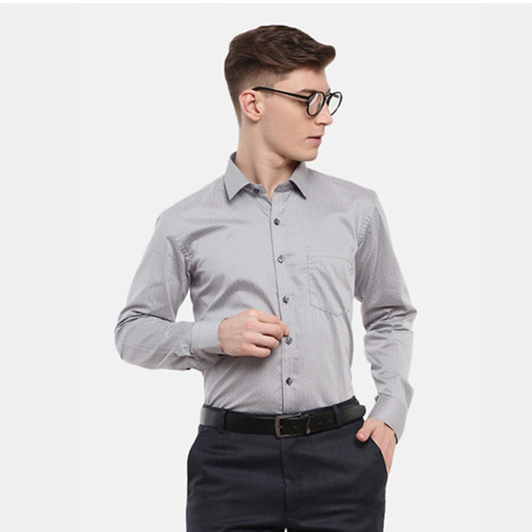 Grey horizontal stripes striped opaque Formal shirt ,has a spread collar, button placket, 1 patch pocket, long regular sleeves, curved hem