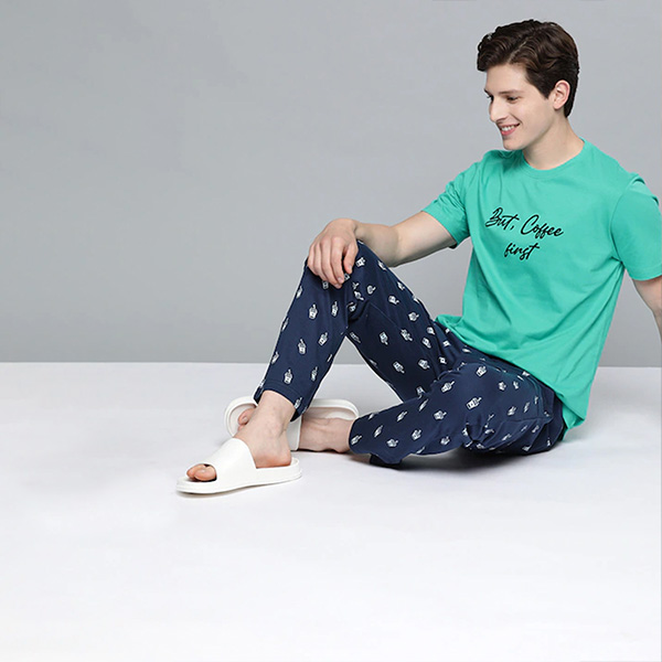 Men Sea Green & Navy Blue Printed Pure Cotton Night suit