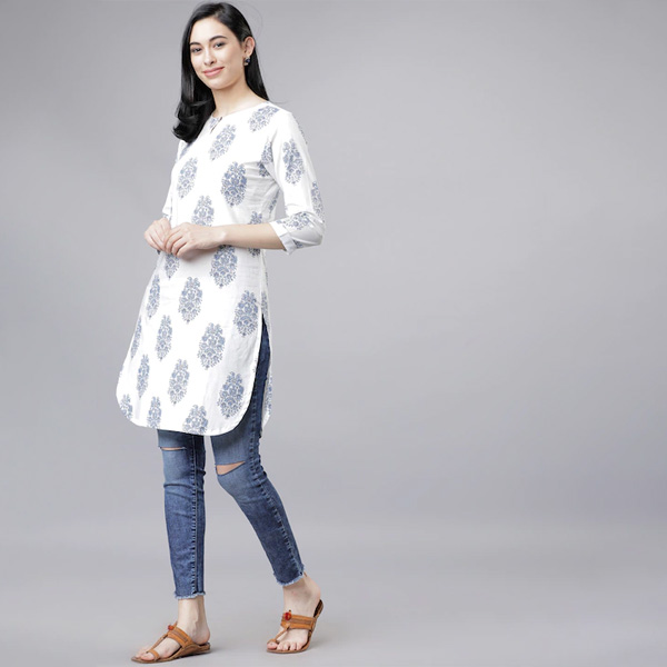 White & Blue Printed Tunic