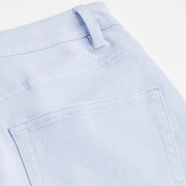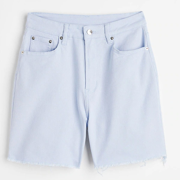 5-pocket shorts in cotton twill with a high waist, zip fly and button and raw-edge hems.