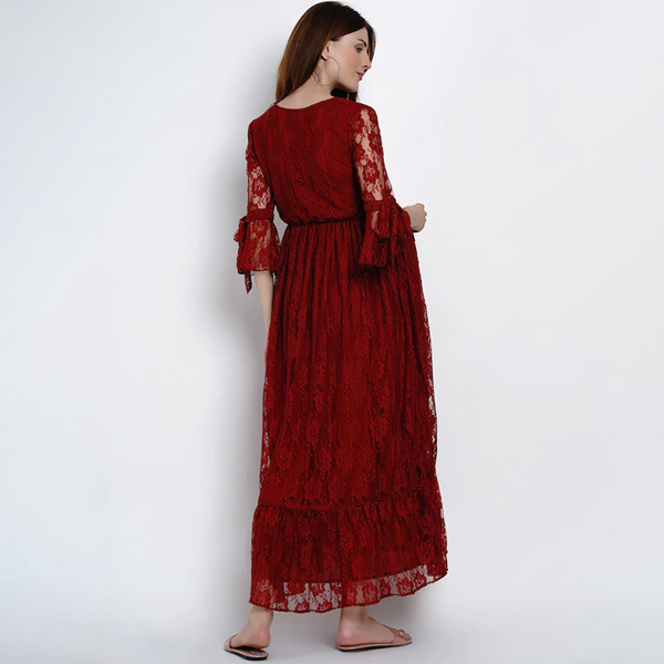 Women Maroon Maternity Self Design Maxi Dress