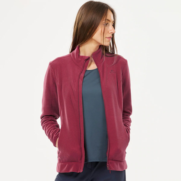 Women Red Solid Polyester Hiking Fleece Jacket