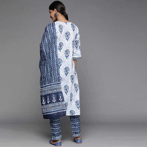 White printed Kurta with Trousers with dupatta